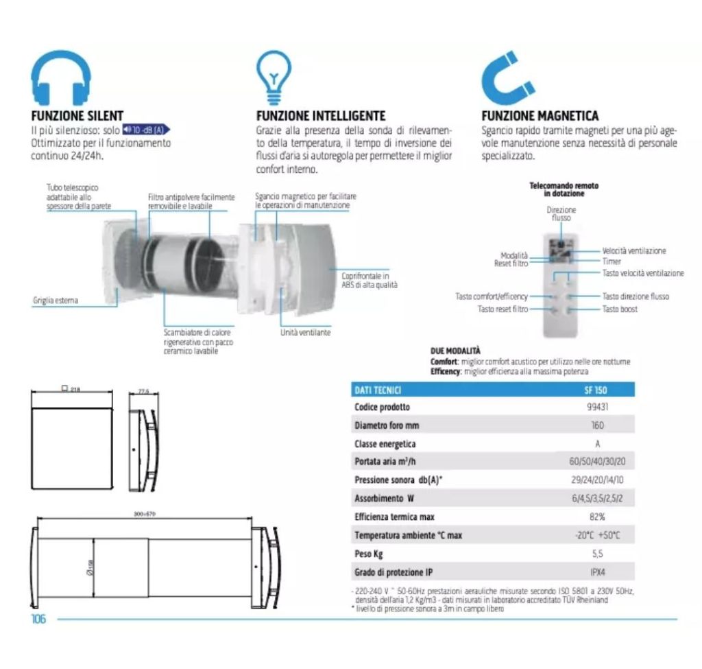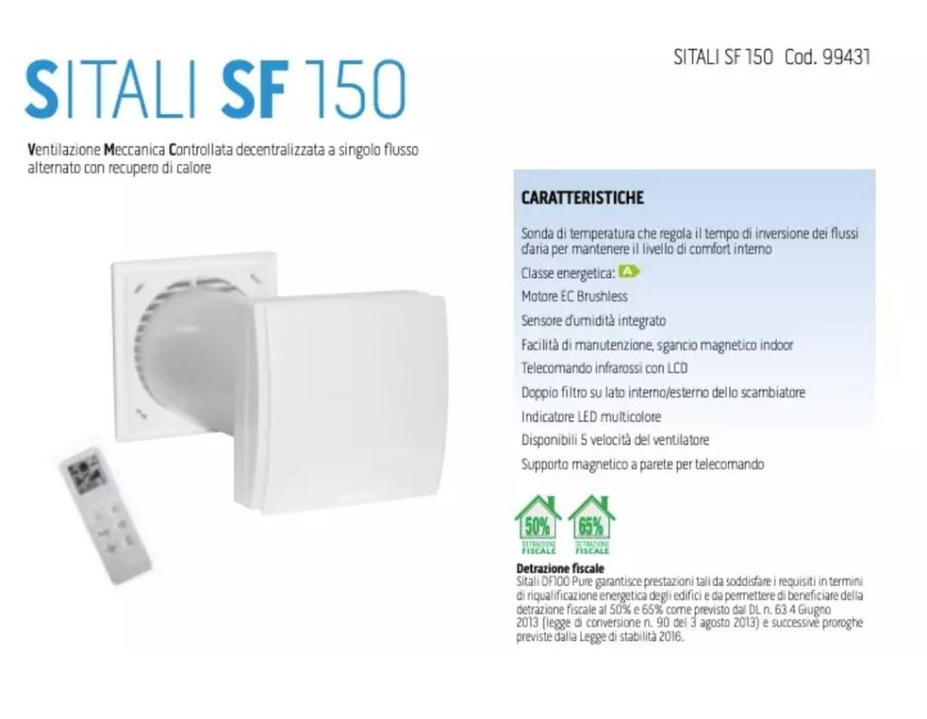 VMC Recuperatore di Calore Olimpia Splendid SITALI SF 150 S1 Diametro 160 mm
